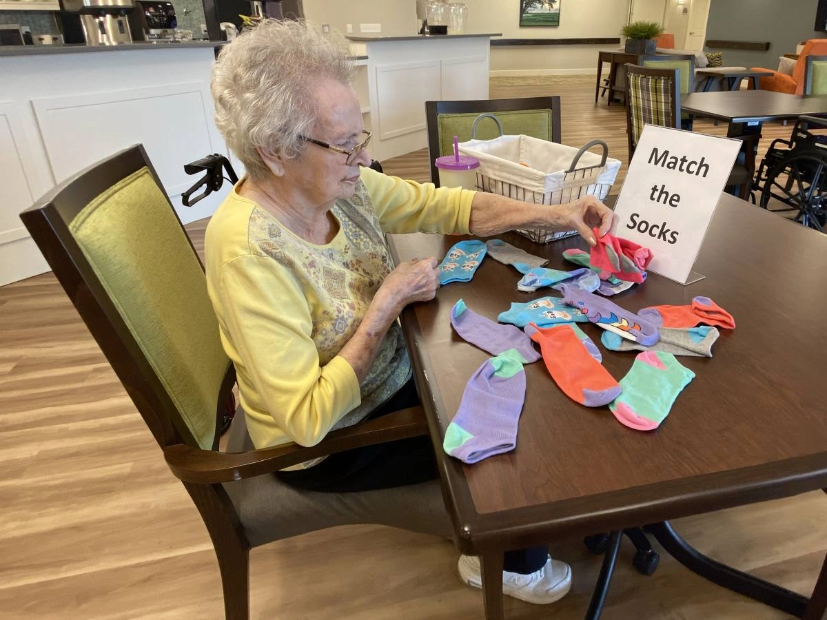 Our memory support program, Portraits®, is thoughtfully designed around Montessori principles, engaging residents’ cognitive abilities through personalized routines and activities. By focusing on each resident’s strengths, abilities, and interests, we create a program that stimulates brain activity, helping them to exercise, retain, and enhance their remaining skills.