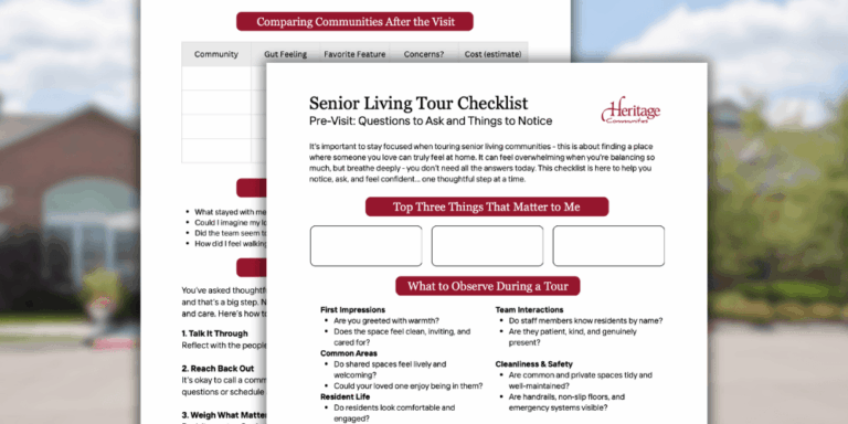 Download our Senior Living Tour Checklist! It’s a free guide to help you ask with confidence, observe with clarity, and reflect with peace of mind.