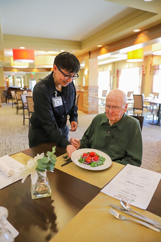 Enjoy breakfast, lunch, dinner, and snacks with the fresh, flavorful foods served at our full-service restaurant-style dining room at Orchard Pointe at Glendale. You or your loved one will receive three meals each day, along with access to a self-service bistro. Grab coffee and a muffin with friends or enjoy dinner with family in the private dining room.
