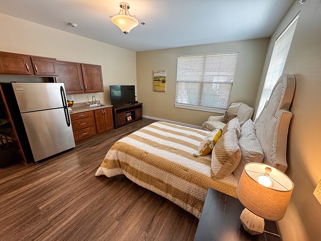 Live your best life in one of our assisted living apartment homes. Free from the upkeep and maintenance of your apartment, you can spend your time doing what you want, from activities on our social calendar to relaxing in the courtyard. Enjoy the convenience of a fully equipped kitchen or kitchenette, easily maneuverable floor plans, and various must-have features and amenities, including high-speed internet and a personal apartment thermostat.