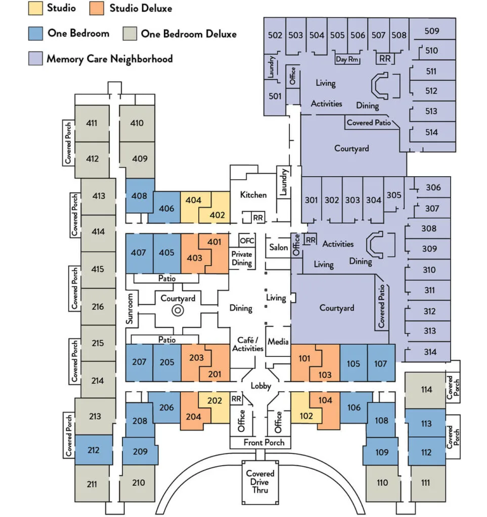 - Short, Easy Hallways – Simple navigation throughout supports familiarity and promotes confidence